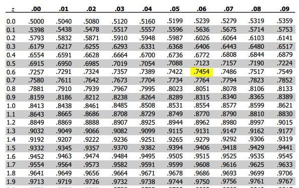 Computing Percentile From Standard Normal Table