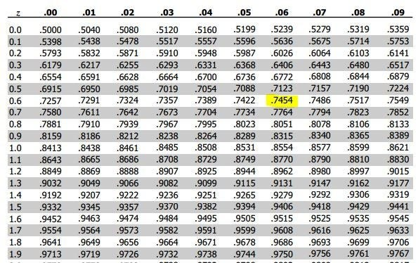 For example, if we calculate a Z-score in Python, we might get 0.745, which matches what we find in the standard normal table.
